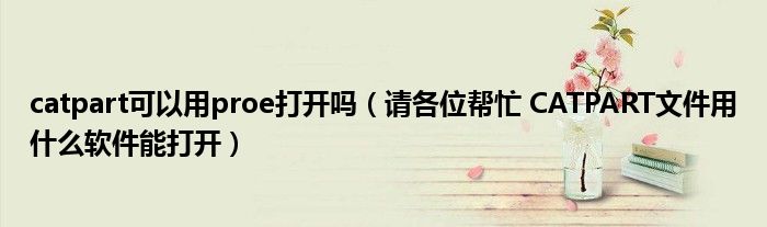 大家好,小联来为大家解答以上的问题。catpart可以用proe打开吗,请各位帮忙 CATPART文件用什么软件能打开这个很多人还不知道,现在让我们一起来看看吧!
