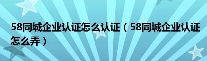 58同城企业认证怎么认证(58同城企业认证怎么弄)