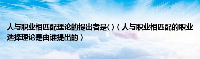 人与职业相匹配理论的提出者是( )(人与职业相匹配的职业选择理论是由谁提出的)