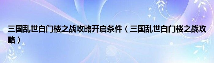 三国乱世白门楼之战攻略开启条件(三国乱世白门楼之战攻略)