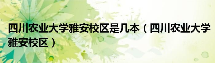 大家好,小晋来为大家解答以下问题,关于四川农业大学雅安校区是几本,四川农业大学雅安校区很多人还不知道,今天让我们一起来看看吧!