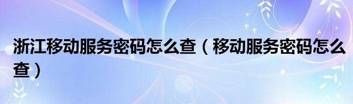浙江移动服务密码怎么查(移动服务密码怎么查)