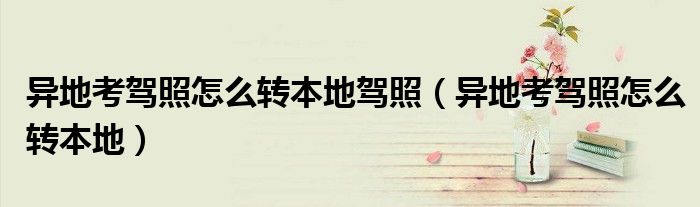 大家好,小晋来为大家解答以下问题,关于异地考驾照怎么转本地驾照,异地考驾照怎么转本地很多人还不知道,今天让我们一起来看看吧!