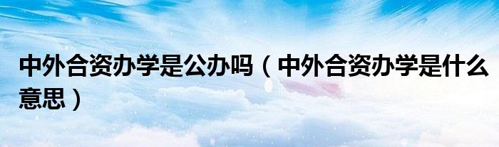 关于中外合资办学是公办吗,中外合资办学是什么意思这个很多人还不知道,今天菲菲来为大家解答以上的问题,现在让我们一起来看看吧!