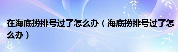 大家好,小晋来为大家解答以下问题,关于在海底捞排号过了怎么办,海底捞排号过了怎么办很多人还不知道,今天让我们一起来看看吧!
