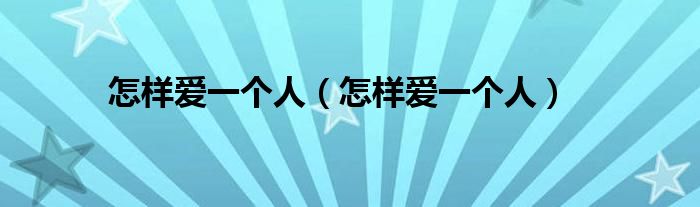 怎样爱一个人,怎样爱一个人这个很多人还不知道,小飞来为大家解答以上的问题。现在让我们一起来看看吧!