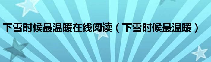 下雪时候最温暖在线阅读,下雪时候最温暖这个很多人还不知道,小飞来为大家解答以上的问题。现在让我们一起来看看吧!