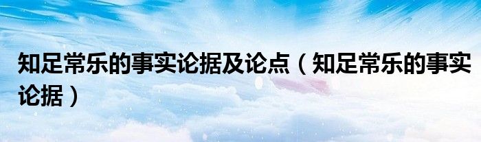 关于知足常乐的事实论据及论点,知足常乐的事实论据这个很多人还不知道,今天菲菲来为大家解答以上的问题,现在让我们一起来看看吧!