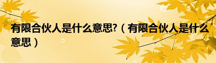 关于有限合伙人是什么意思?,有限合伙人是什么意思这个很多人还不知道,今天菲菲来为大家解答以上的问题,现在让我们一起来看看吧!