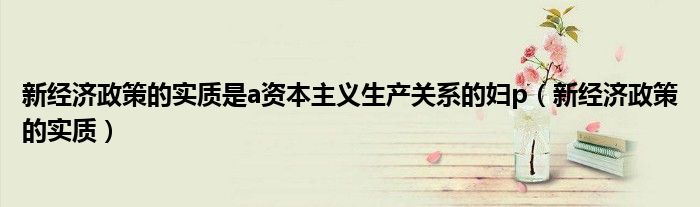 关于新经济政策的实质是a资本主义生产关系的妇p,新经济政策的实质这个很多人还不知道,今天菲菲来为大家解答以上的问题,现在让我们一起来看看吧!