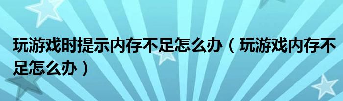 关于玩游戏时提示内存不足怎么办,玩游戏内存不足怎么办这个很多人还不知道,今天菲菲来为大家解答以上的问题,现在让我们一起来看看吧!