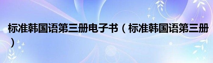 标准韩国语第三册电子书,标准韩国语第三册这个很多人还不知道,小飞来为大家解答以上的问题。现在让我们一起来看看吧!