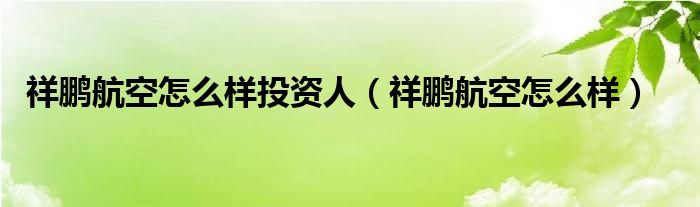 祥鹏航空怎么样投资人(祥鹏航空怎么样)