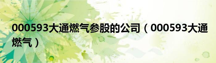 000593大通燃气参股的公司(000593大通燃气)