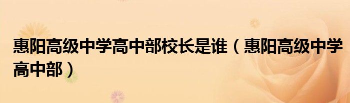关于惠阳高级中学高中部校长是谁,惠阳高级中学高中部这个很多人还不知道,今天菲菲来为大家解答以上的问题,现在让我们一起来看看吧!