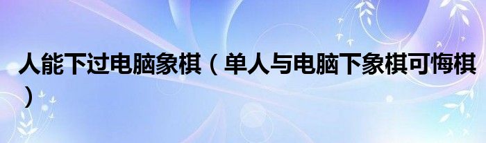关于人能下过电脑象棋,单人与电脑下象棋可悔棋这个很多人还不知道,今天菲菲来为大家解答以上的问题,现在让我们一起来看看吧!