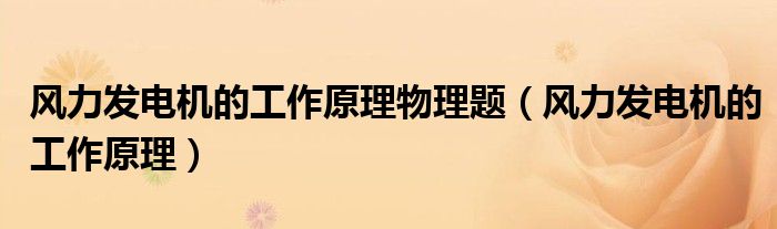 关于风力发电机的工作原理物理题,风力发电机的工作原理这个很多人还不知道,今天菲菲来为大家解答以上的问题,现在让我们一起来看看吧!