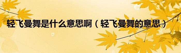 轻飞曼舞是什么意思啊,轻飞曼舞的意思这个很多人还不知道,小飞来为大家解答以上的问题。现在让我们一起来看看吧!