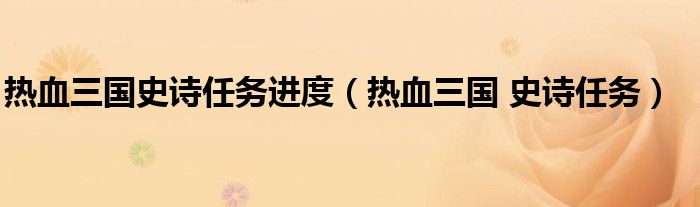 热血三国史诗任务进度,热血三国 史诗任务这个很多人还不知道,小飞来为大家解答以上的问题。现在让我们一起来看看吧!