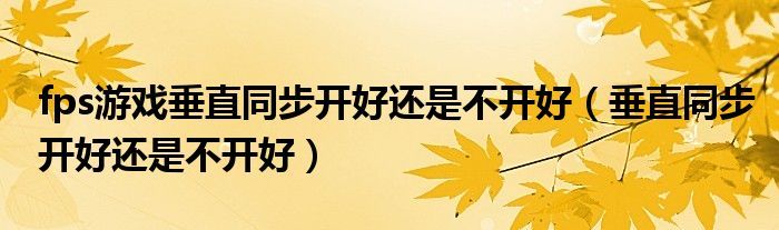关于fps游戏垂直同步开好还是不开好,垂直同步开好还是不开好这个很多人还不知道,今天菲菲来为大家解答以上的问题,现在让我们一起来看看吧!