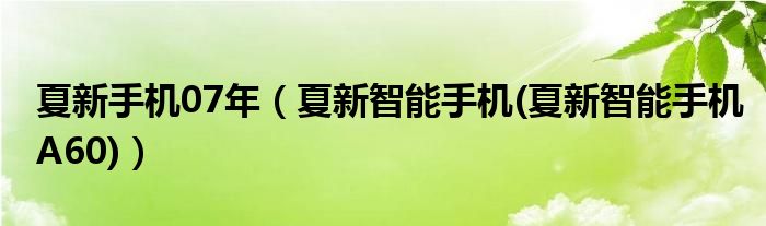 大家好,小常来为大家解答以上问题。夏新手机07年,夏新智能手机(夏新智能手机A60)很多人还不知道,现在让我们一起来看看吧!