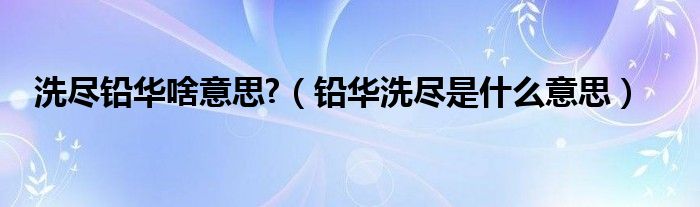 关于洗尽铅华啥意思?,铅华洗尽是什么意思这个很多人还不知道,今天菲菲来为大家解答以上的问题,现在让我们一起来看看吧!