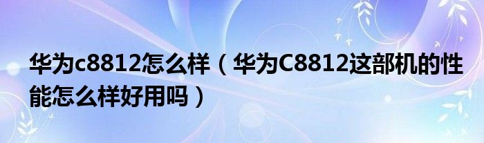 1,华为C8812这部机的性能怎么样?好用吗?:性能一般,有些卡,但是性价比很高