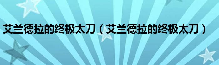 艾兰德拉的终极太刀,艾兰德拉的终极太刀这个很多人还不知道,小飞来为大家解答以上的问题。现在让我们一起来看看吧!