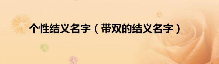 关于个性结义名字,带双的结义名字这个很多人还不知道,今天菲菲来为大家解答以上的问题,现在让我们一起来看看吧!