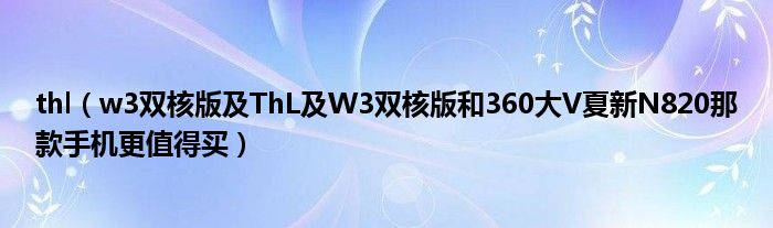 大家好,小常来为大家解答以上问题。thl,w3双核版及ThL及W3双核版和360大V夏新N820那款手机更值得买很多人还不知道,现在让我们一起来看看吧!