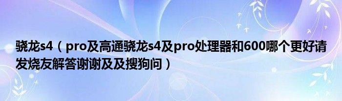 大家好,小常来为大家解答以上问题。骁龙s4,pro及高通骁龙s4及pro处理器和600哪个更好请发烧友解答谢谢及及搜狗问很多人还不知道,现在让我们一起来看看吧!
