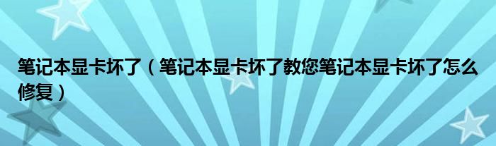 5,笔记本电脑显卡坏了如何修复 :可能是你的分辨率设置不正确引起的,请重新设置。如果不是分辨率的问题或设置不了分辨率,这是显卡驱动受损,或安装了不合适的驱动引起的,请安装合适的显卡驱动,或修复一下系统,请看看下面的方法。1、开机按F8不动到高级选项出现在松手,选“最近一次的正确配置”回车修复(这个方法可以恢复原来的驱动)。2、如果是因更新驱动引起的故障,右击我的电脑选属性,选设备管理器找到这个驱动右键选属性/上面的驱动程序选项/选下面返回驱动程序选项按确定。3、如果故障依旧,建议重装操作系统。使用系统自带的系统还原的方法:系统自带的系统还原:“开始”/“程序”/“附件”/“系统工具”/“系统还原”,点选“恢复我的计算机到一个较早的时间”,按下一步,你会看到日期页面有深色的日期,那就是还原点,你选择后,点击下一步还原(Win78还原系统,右击计算机选属性,在右侧选系统保护,系统还原,按步骤做就是了,如果有还原软件,也可以用软件还原系统)。驱动有随电脑自带的,有官方网站下载的,软件有驱动精灵、驱动人生、超级兔子等软件(安装驱动尽量按顺序安装)。