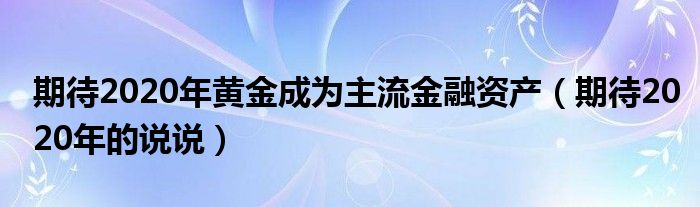 大家好,慧慧来为大家解答以上问题,期待2020年黄金成为主流金融资产,期待2020年的说说很多人还不知道,现在让我们一起来看看吧!