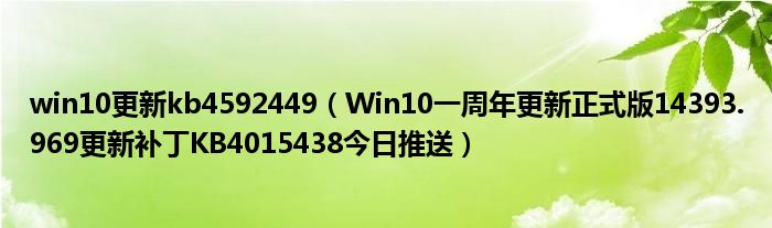大家好,今天小悦来为大家解答以上问题。win10更新kb4592449,Win10一周年更新正式版14393.969更新补丁KB4015438今日推送很多人还不知道,现在让我们一起来看看吧!