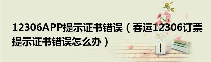 大家好,今天小悦来为大家解答以上问题。12306APP提示证书错误,春运12306订票提示证书错误怎么办很多人还不知道,现在让我们一起来看看吧!