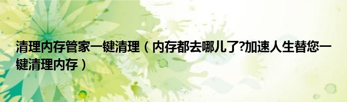大家好,今天小悦来为大家解答以上问题。清理内存管家一键清理,内存都去哪儿了?加速人生替您一键清理内存很多人还不知道,现在让我们一起来看看吧!