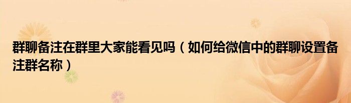 大家好,今天小悦来为大家解答以上问题。群聊备注在群里大家能看见吗,如何给微信中的群聊设置备注群名称很多人还不知道,现在让我们一起来看看吧!