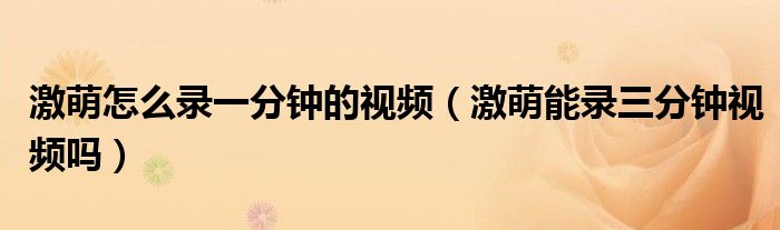 大家好,跳跳为你解答以上问题。激萌怎么录一分钟的视频,激萌能录三分钟视频吗这个问题很多人还不知道,现在让我们一起来看看吧!