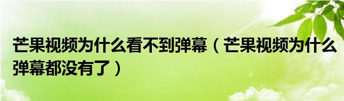 大家好,跳跳为你解答以上问题。芒果视频为什么看不到弹幕,芒果视频为什么弹幕都没有了这个问题很多人还不知道,现在让我们一起来看看吧!