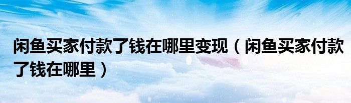 大家好,跳跳为你解答以上问题。闲鱼买家付款了钱在哪里变现,闲鱼买家付款了钱在哪里这个问题很多人还不知道,现在让我们一起来看看吧!