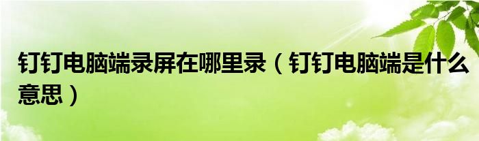 大家好,跳跳为你解答以上问题。钉钉电脑端录屏在哪里录,钉钉电脑端是什么意思这个问题很多人还不知道,现在让我们一起来看看吧!