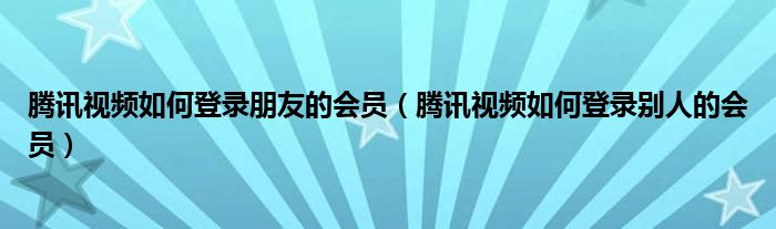 大家好,跳跳为你解答以上问题。腾讯视频如何登录朋友的会员,腾讯视频如何登录别人的会员这个问题很多人还不知道,现在让我们一起来看看吧!