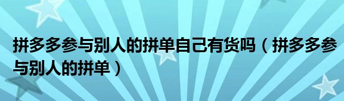 拼多多参与别人的拼单自己有货吗(拼多多参与别人的拼单)