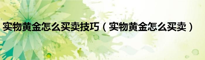实物黄金怎么买卖技巧(实物黄金怎么买卖)