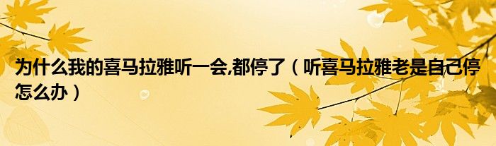 大家好,跳跳为你解答以上问题。为什么我的喜马拉雅听一会,都停了,听喜马拉雅老是自己停怎么办这个问题很多人还不知道,现在让我们一起来看看吧!