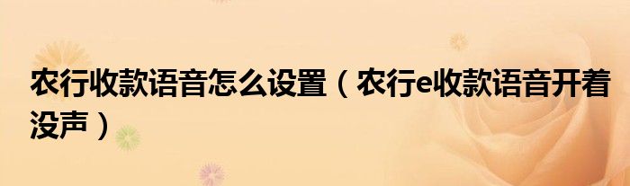 大家好,跳跳为你解答以上问题。农行收款语音怎么设置,农行e收款语音开着没声这个问题很多人还不知道,现在让我们一起来看看吧!