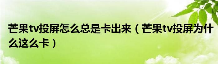 大家好,跳跳为你解答以上问题。芒果tv投屏怎么总是卡出来,芒果tv投屏为什么这么卡这个问题很多人还不知道,现在让我们一起来看看吧!