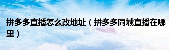 大家好,跳跳为你解答以上问题。拼多多直播怎么改地址,拼多多同城直播在哪里这个问题很多人还不知道,现在让我们一起来看看吧!