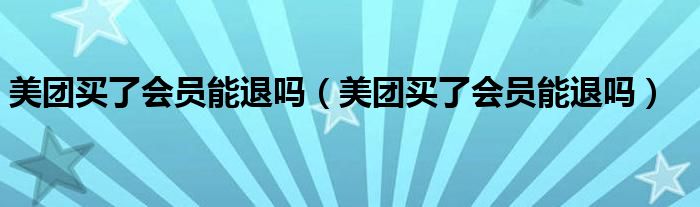 大家好,跳跳为你解答以上问题。美团买了会员能退吗,美团买了会员能退吗这个问题很多人还不知道,现在让我们一起来看看吧!