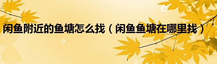 大家好,熊熊为你解答以上问题。闲鱼附近的鱼塘怎么找,闲鱼鱼塘在哪里找这个很多人还不知道,现在让我们一起来看看吧!